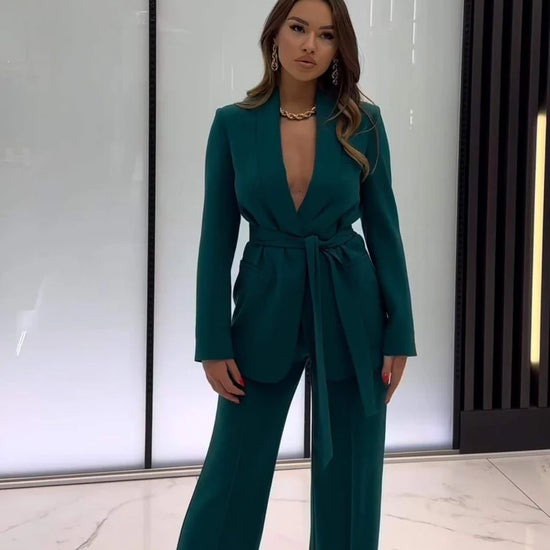 Elevate your everyday with the Antaradus Emrata Tailored Suit Set — a refined jacket, belted waist for the perfect fit, and comfortable wide-leg trousers. Available in 9 stunning colours, from classic Black and White to bold Fuchsia and Lilac. Designed for the woman who brings style to every room — office, dinner, or anywhere in between.